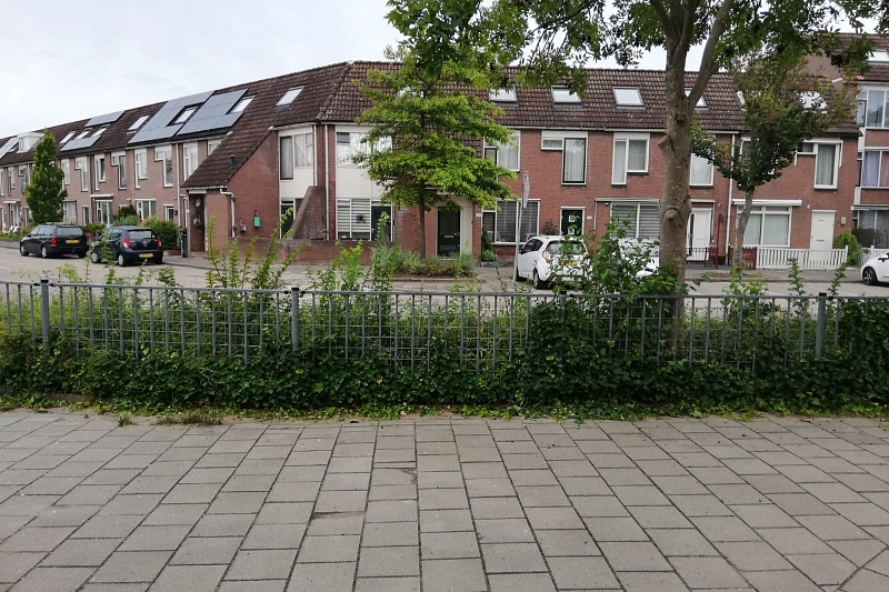 Om tijdens de Corona-periode te zorgen dat ouders en leerlingen zoveel mogelijk gespreid de school binnen kwamen is aan de Windmolen-zijde een (tijdelijke) doorgang in het hek gemaakt, zodat er drie doorgangen naar het plein zijn gecreëerd.